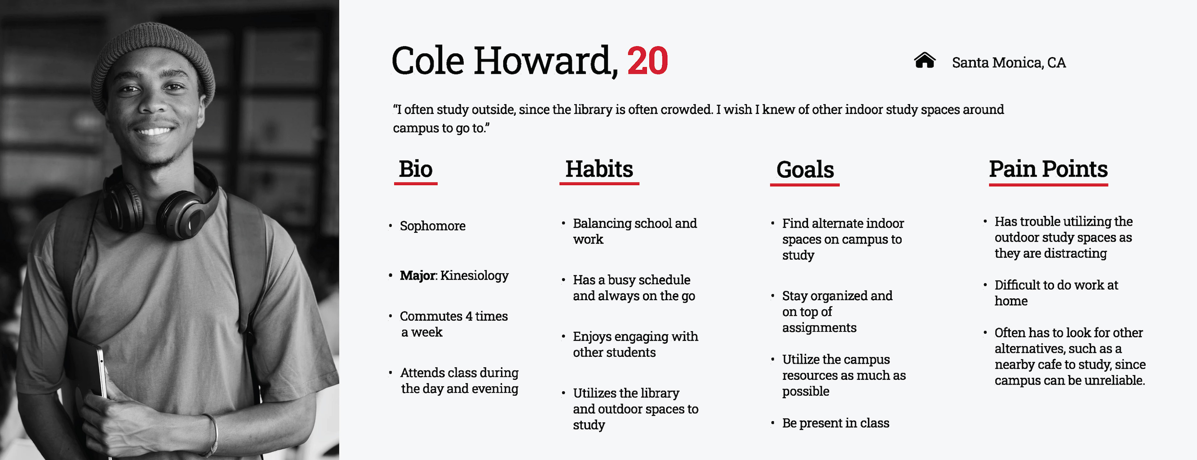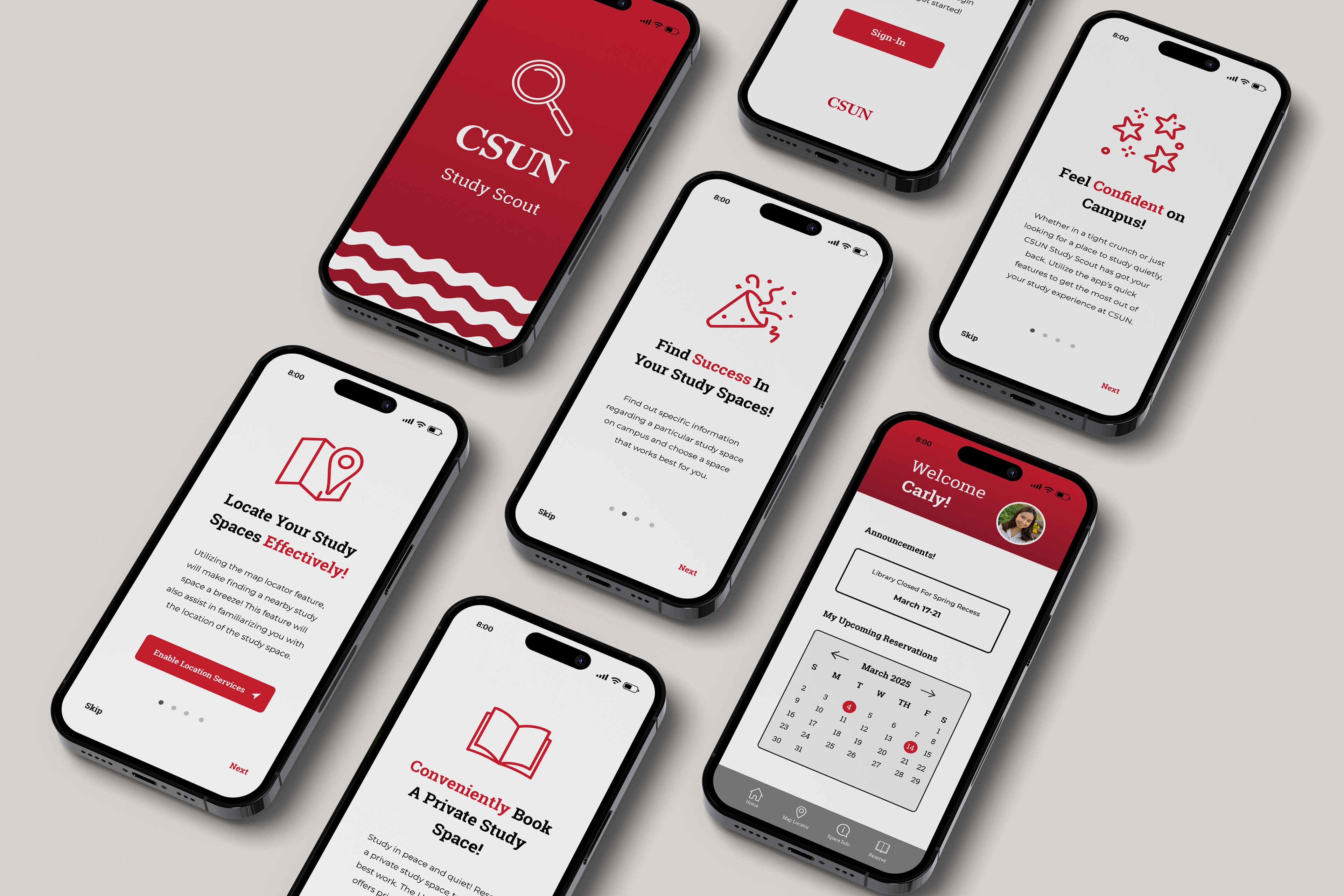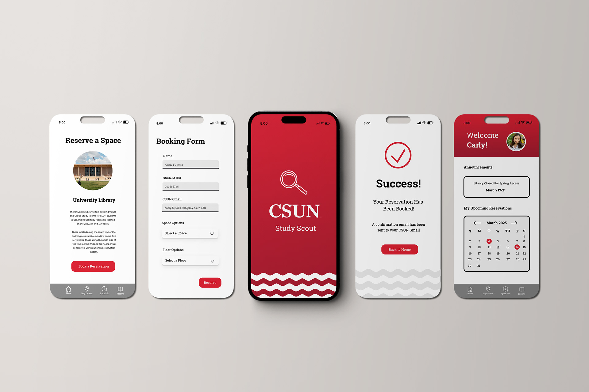 The CSUN Study Scout Application is a frontal design UX/UI Project. The goal of the project was to identify and solve a real problem on campus. Through firsthand research, including surveying students around campus, I discovered that many students struggle to find available and suitable study spaces. To address this issue I designed and built a simple web app that helps students easily locate and reserve study spaces on campus. This project focused on user-centered design, accessibility, and practical campus usability to improve the student study experience.