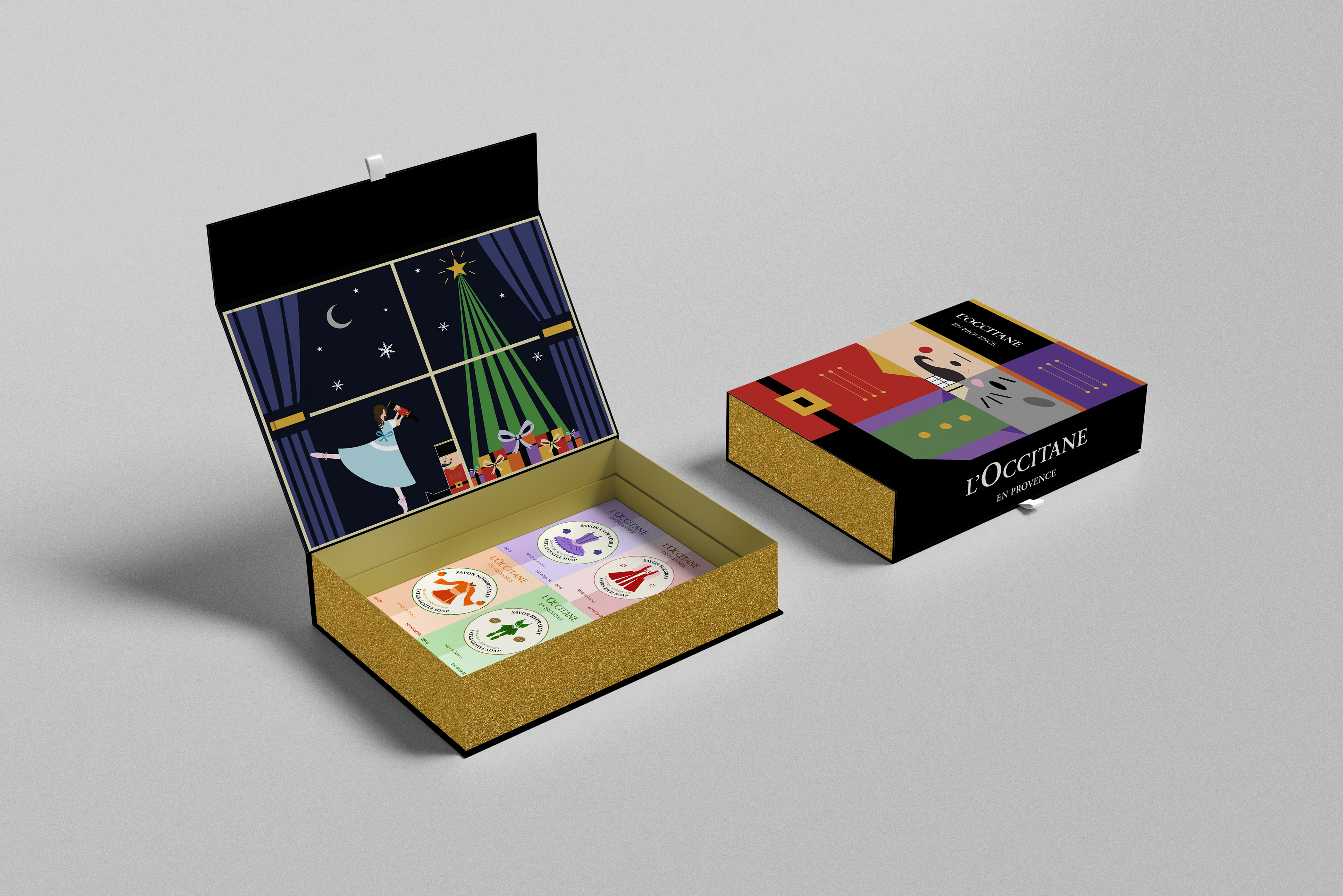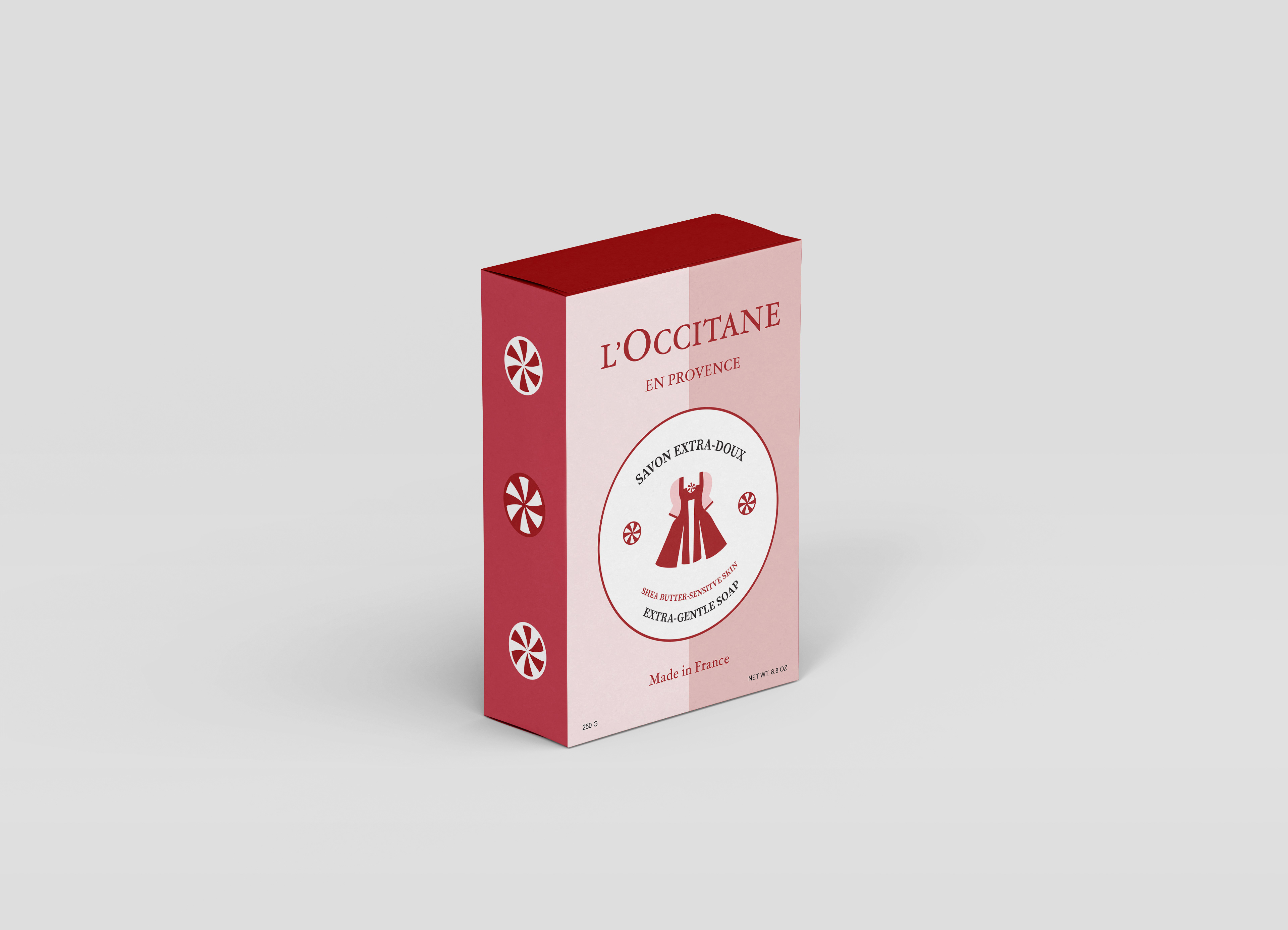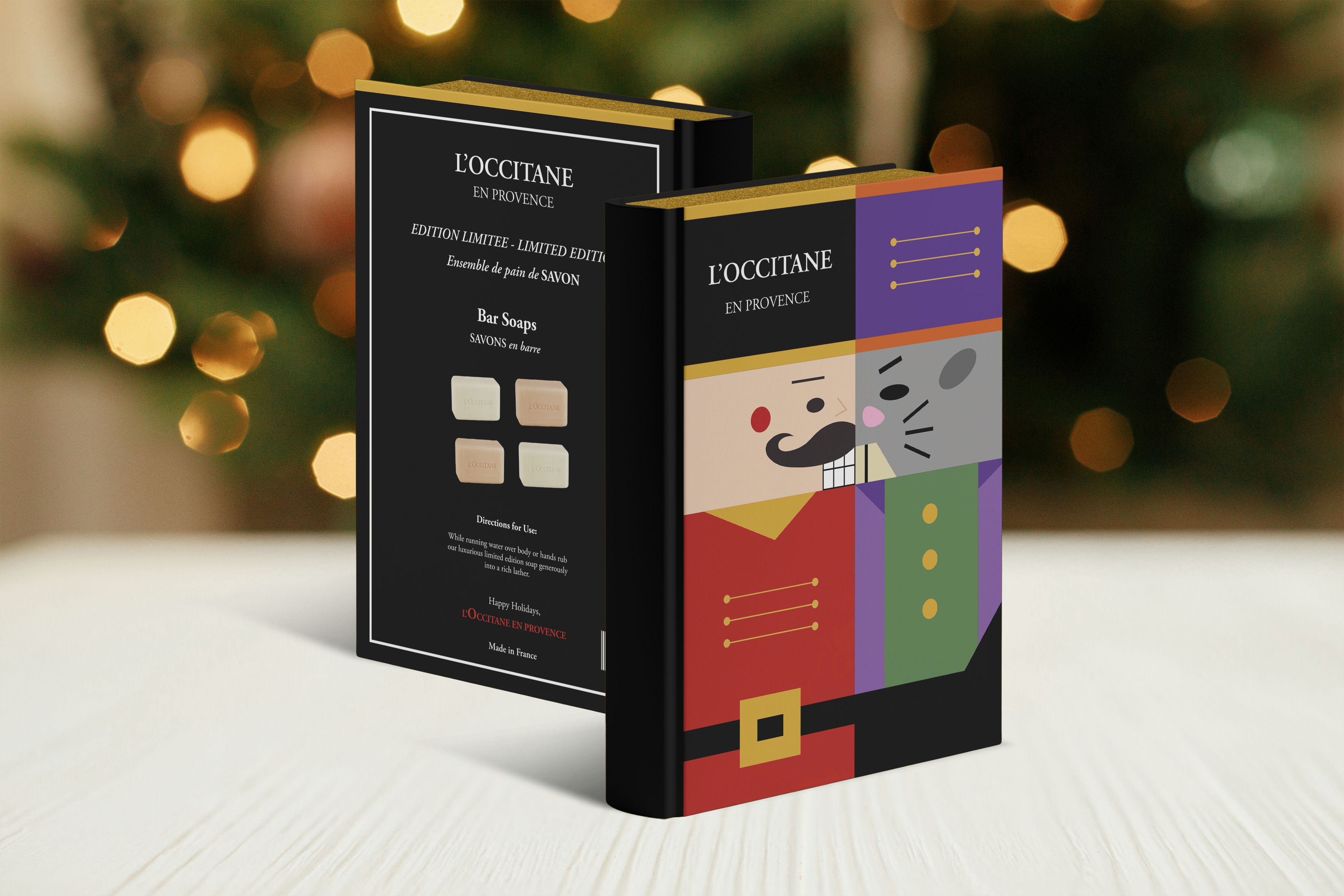 For this project, I developed a fictional Christmas holiday design for L’Occitane en Provence, a luxury French company known for its body, face, hair, and home products. The design is inspired by the Nutcracker Ballet, a personal and meaningful choice, as I trained in classical ballet growing up. I wanted to bring a unique and whimsical perspective to the brand, blending tradition with elegance. As part of the campaign, I created a limited-edition set of four bar soaps, designed specifically for in-store sales during the holiday season.
