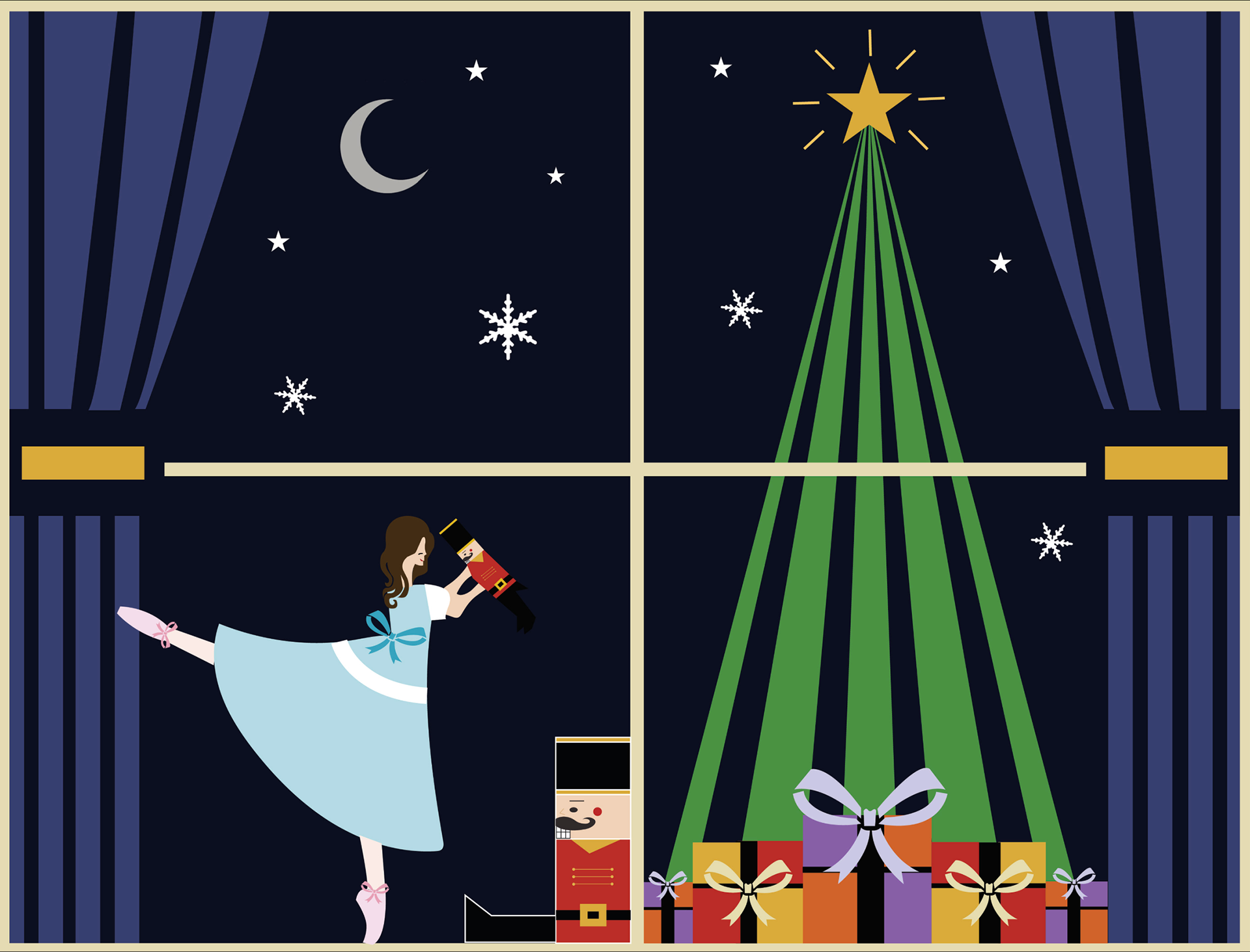 For the interior of the box, I wanted to reflect the tender moment when Clara awakens from her magical dream. After witnessing the Nutcracker’s battle with the Mouse King and her journey through the Land of Sweets, she finds herself back in her living room on Christmas morning. Though the adventure seems over, she holds the wooden Nutcracker close and dances with it, filled with wonder and joy. The magic still lives within her, symbolizing the lasting beauty of imagination and the holiday spirit. Soft colors and delicate details in the interior design help evoke this quiet, dreamlike transition.