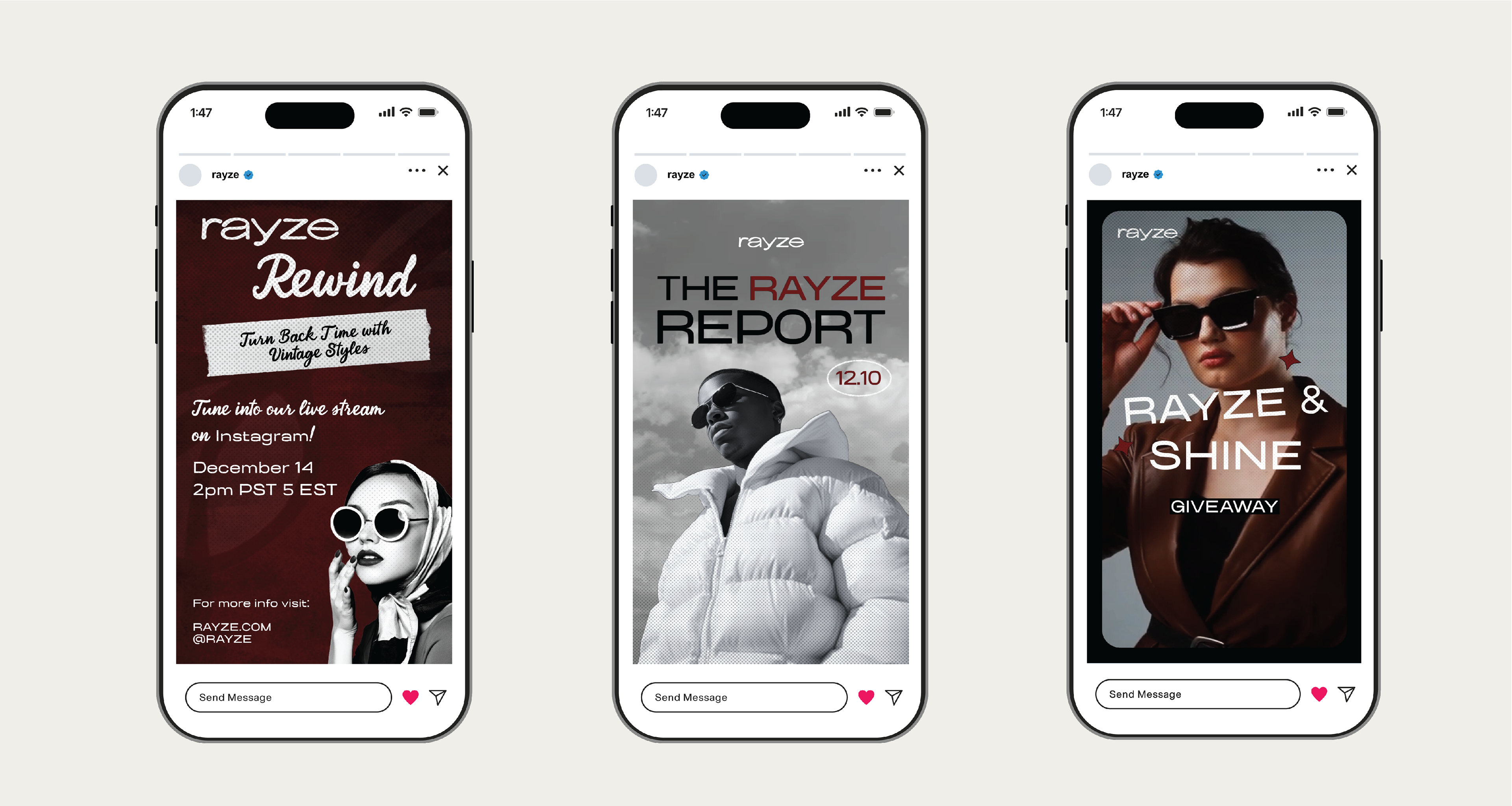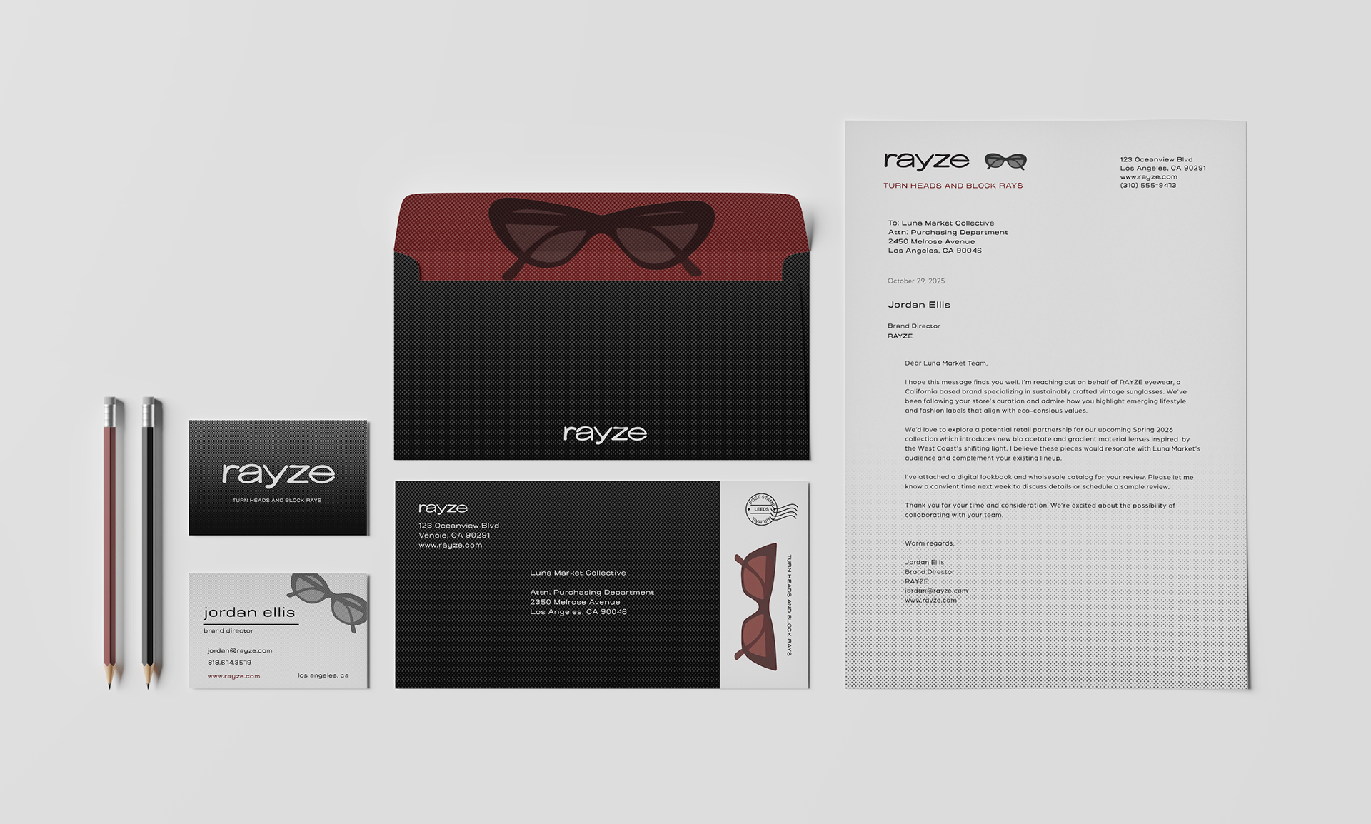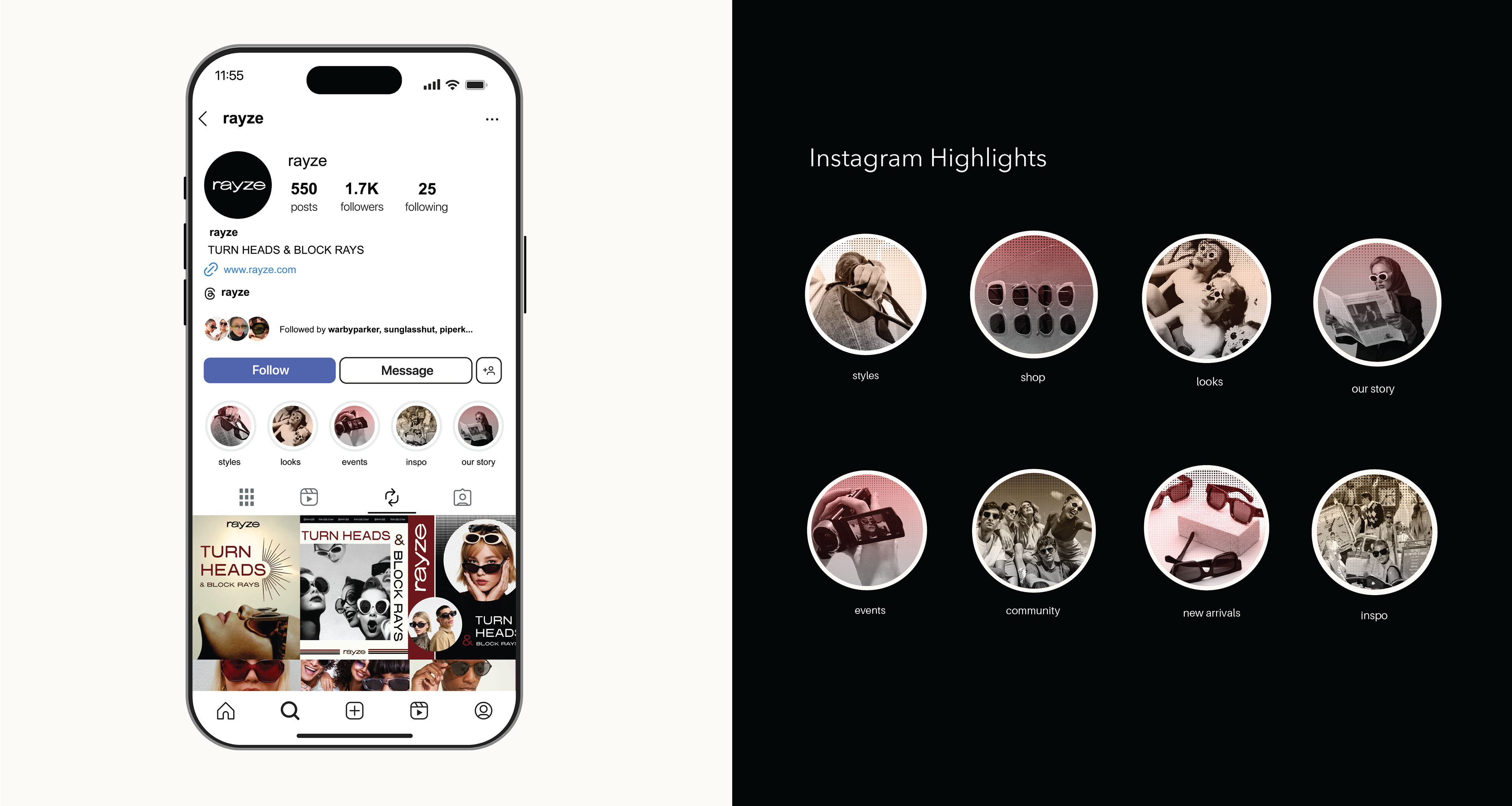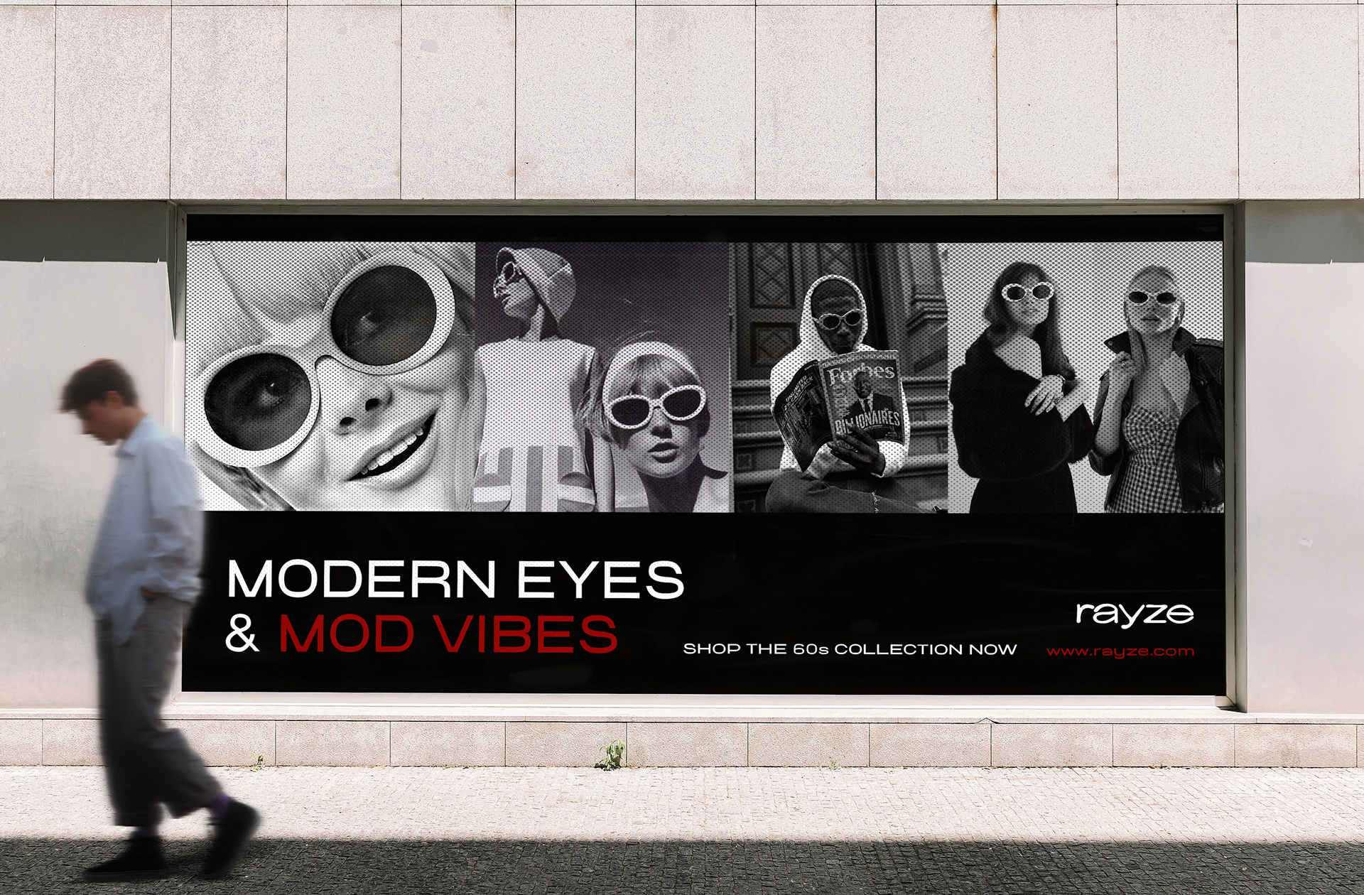 My visual research is inspired by vintage eyewear culture, editorial fashion photography, and retro graphic design, creating a visual identity that balances nostalgia with modernity. Classic sunglass silhouettes and archival advertising influence the bold imagery and expressive portraits, reinforcing the brand’s emphasis on individuality and statement-making design. A muted palette of neutrals, deep reds, and soft creams establishes a timeless, elevated tone, while clean typography keeps the brand feeling contemporary.