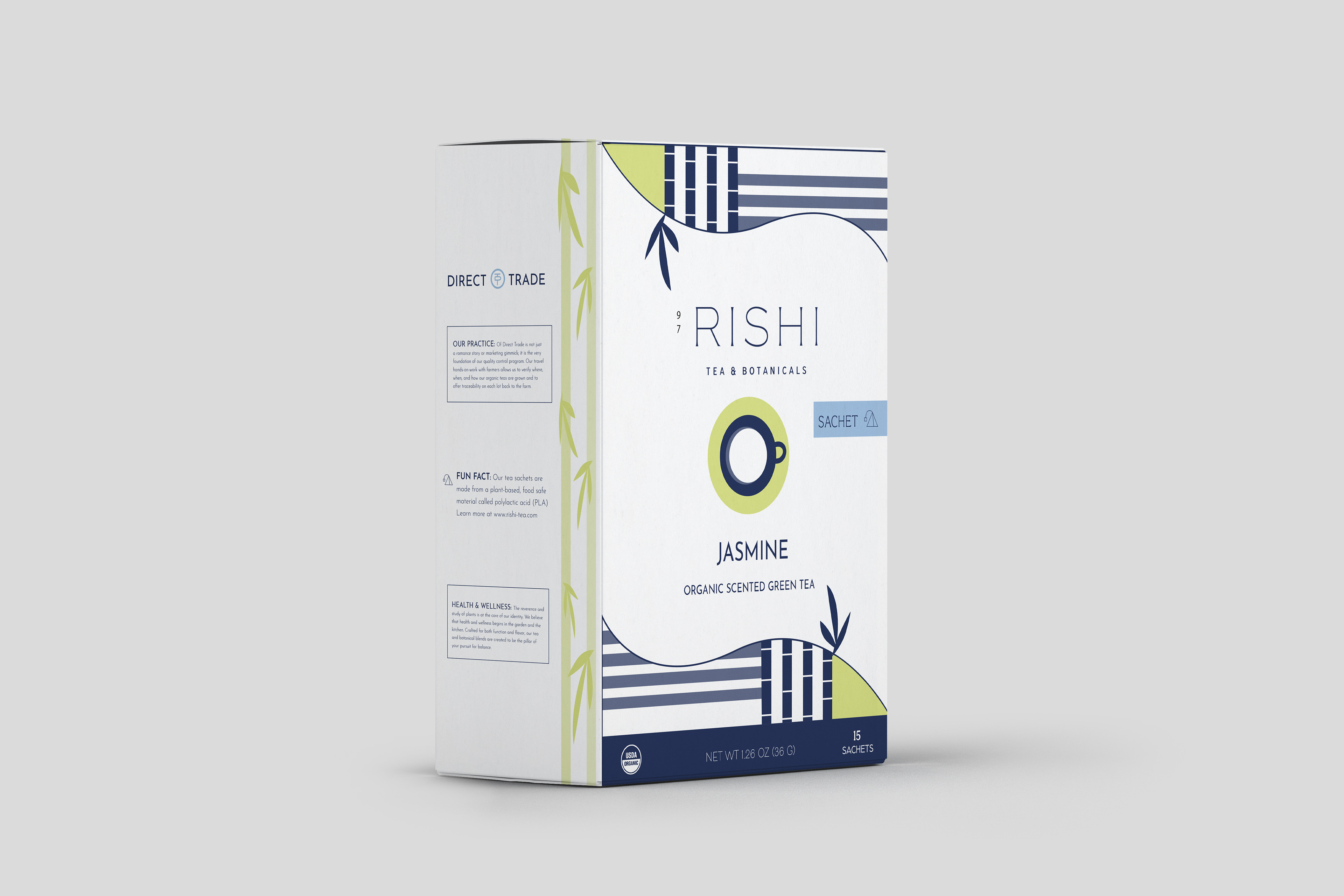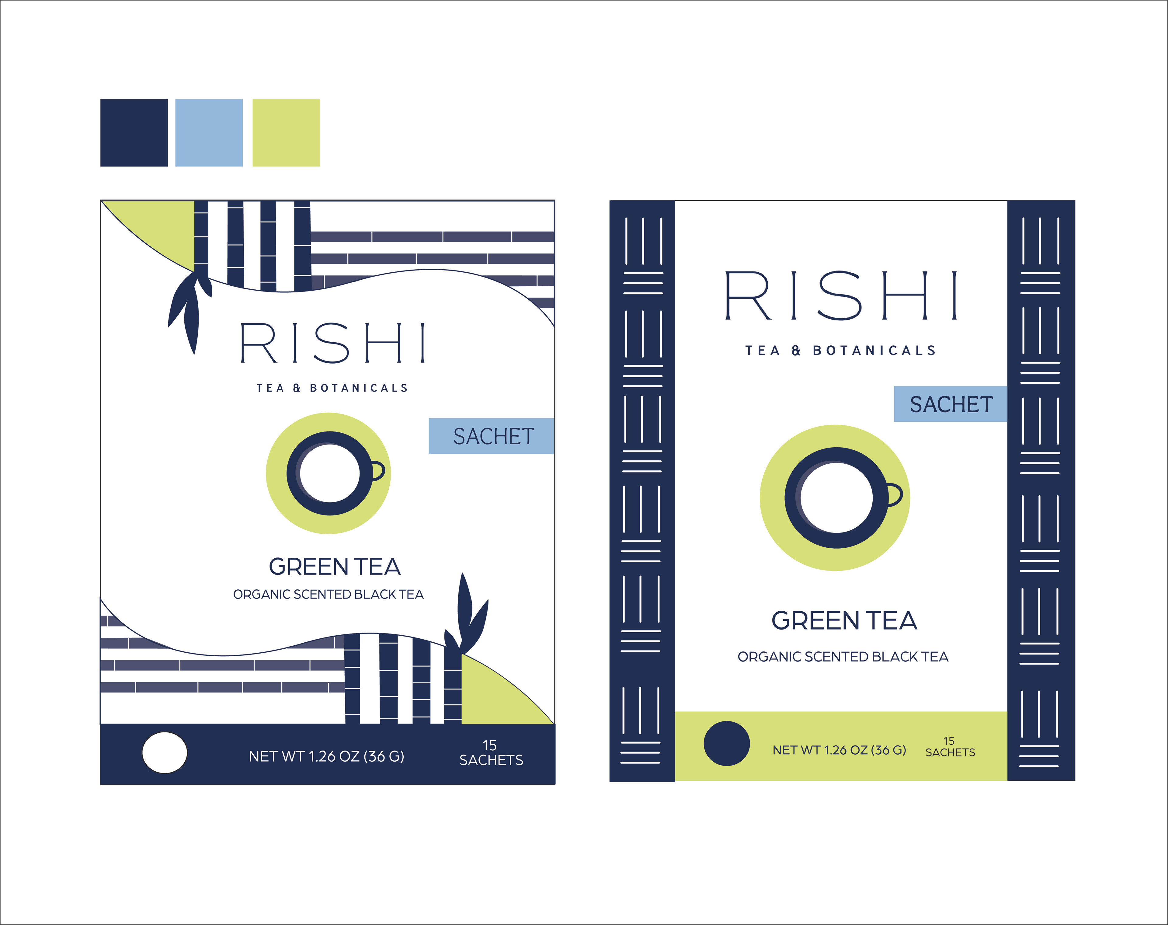 For the font choice, I wanted to stay true to the original RISHI Tea & Botanicals packaging by using the