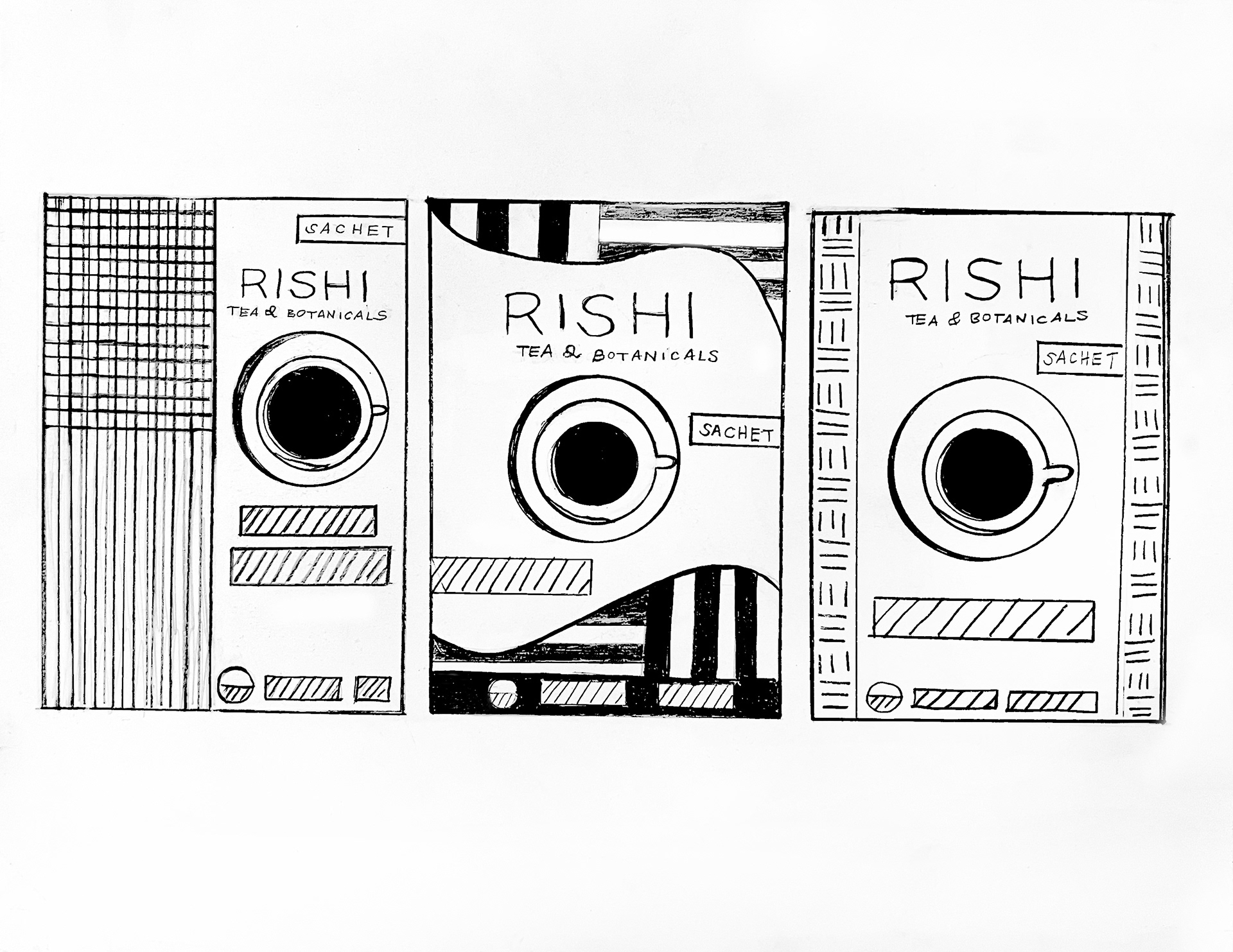 My sketches and digitized front designs are inspired by the brand's Asian origins. I wanted the visuals to evoke a sense of zen, reflecting the peaceful environment where the tea is cultivated. To reinforce this connection, I incorporated natural elements like bamboo and themes of environmental awareness. At the same time, I made sure the packaging design is bold and enticing, striking a balance between subtlety and a strong shelf presence.
